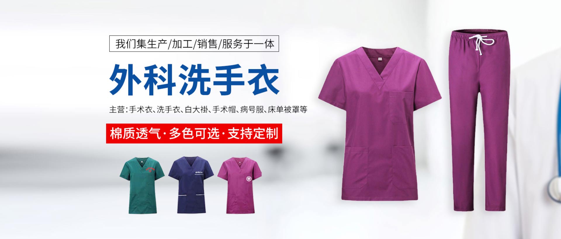 項城市依姿潔服裝有限公司主要生產(chǎn):護士服夏裝、護士服冬裝、醫(yī)生服、病員服、手術服、急救服、護士毛衣、羽絨服、護士鞋、環(huán)衛(wèi)服、床上三件套等。本公司是醫(yī)用服裝生產(chǎn)廠家,公司致力于高質(zhì)量服裝產(chǎn)品的研發(fā)和生產(chǎn),并以客戶為導向,不斷創(chuàng)新,使產(chǎn)品更加專業(yè)化、多樣化,根據(jù)工作環(huán)境不同,配以切合實際的功能性服裝。